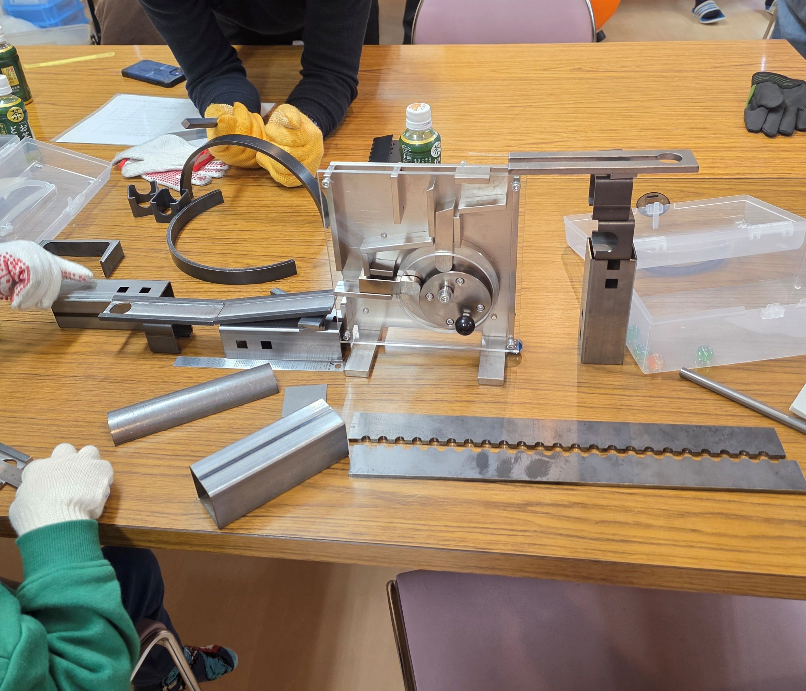 昼の部では毎年好評の鉄の部品を使ったブロック遊びを体験してもらい